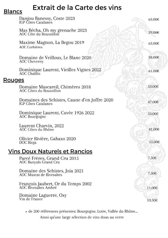 Ci-dessous une sélection de la carte des vins parmi nos 300 références.